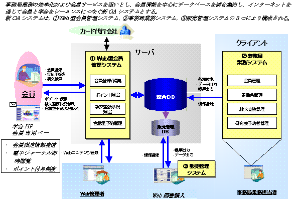 - 統合データベースにより会員管理DB,委員会管理DB,販売管理DBを一元化