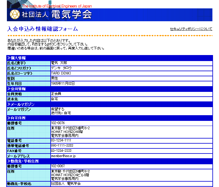- 会員の方の住所,勤務先などの情報変更と参照などに加え,非会員で委員会に所属されている方の入会登録が,次のような画面で行えます。