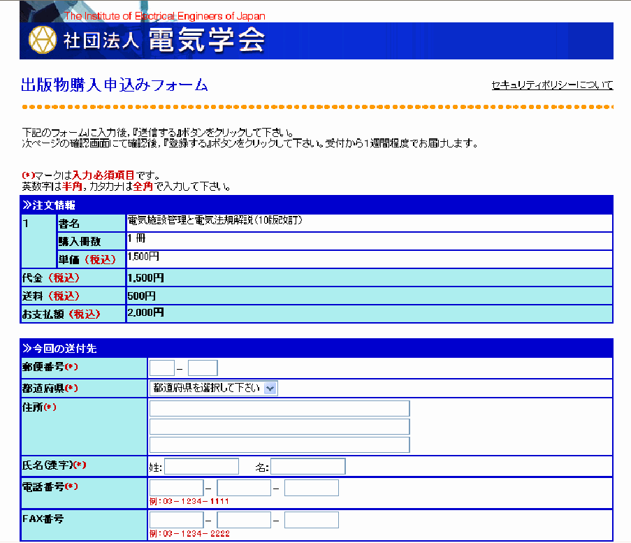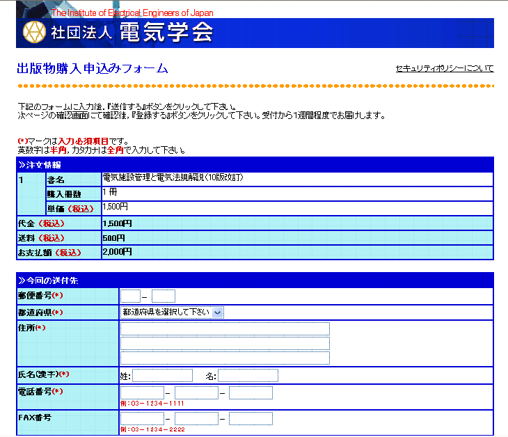 - 次の画面より出版物をご注文いただけます。会員の方は送付先などの登録情報が自動で表示されますので,入力の手間が省けます。