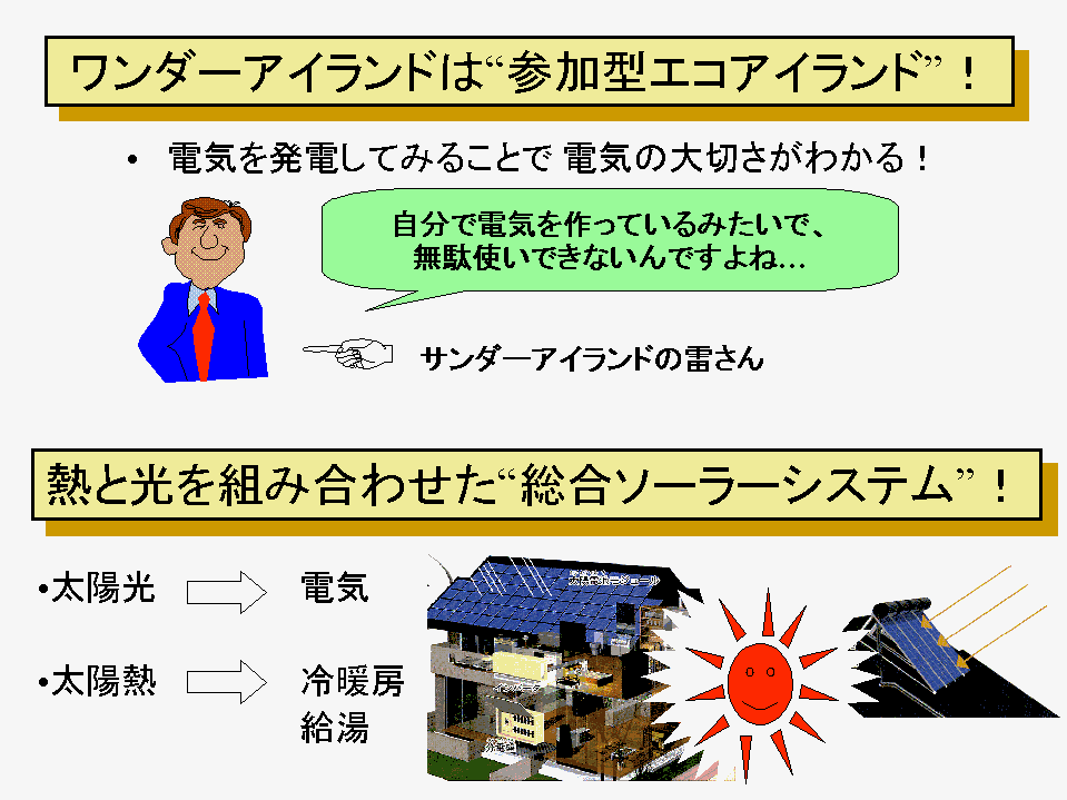 エネルギーワンダーアイランドは参加型エコアイランド!をめざしましょう!これを市長さん,このプランを自信をもっておすすめしたいです。